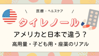 アメリカのTylenol(タイレノール)は日本と同じ感覚で使って大丈夫?高用量の違い、子ども用製品、FeverAll座薬の実体験、妊娠中の注意点までアメリカ在住・元看護師がママ目線でまとめました。